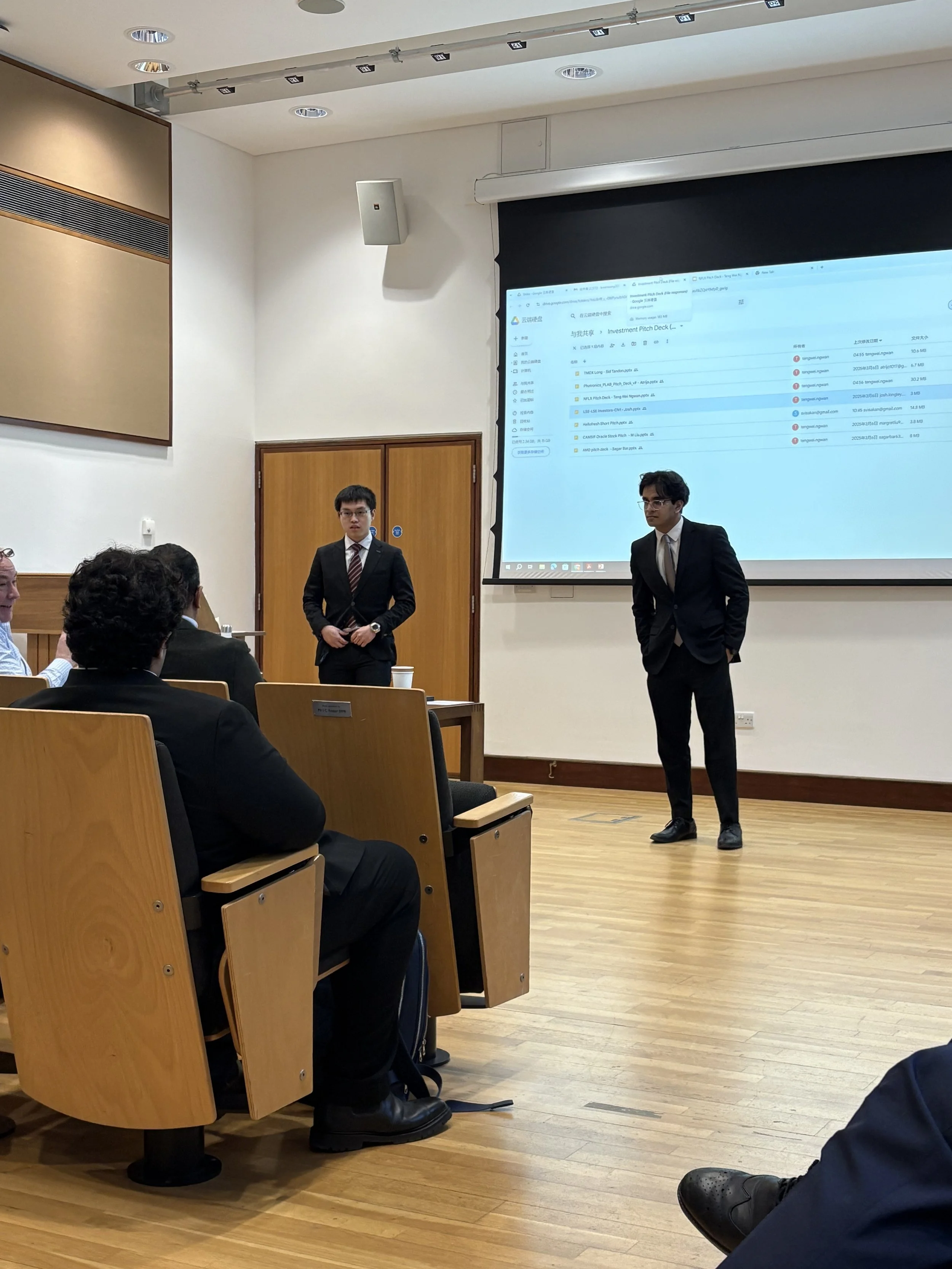 The competition was a valuable yet challenging opportunity to pitch against top teams from across the UK like CAMSIF and LSE, while also those with students flying in from the United States. We were proud to receive strong feedback from the judges, with one remarking that our time-mapped catalyst analysis and integration of expert interviews demonstrated a level of depth and rigour they would not even expect from a first-year analyst.